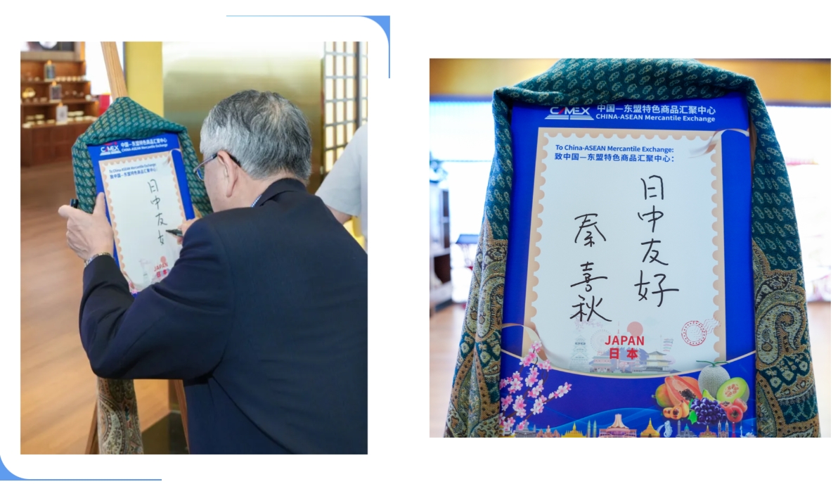 隨即,秦喜秋副會(huì)長在日本館書寫下“日中友好”的寄語,并祝愿匯聚中心發(fā)展越來越好!他表示,本次參觀考察收獲滿滿,但行程較為匆忙,仍覺意猶未盡,期待未來有更多機(jī)會(huì)到匯聚中心作進(jìn)一步溝通交流。