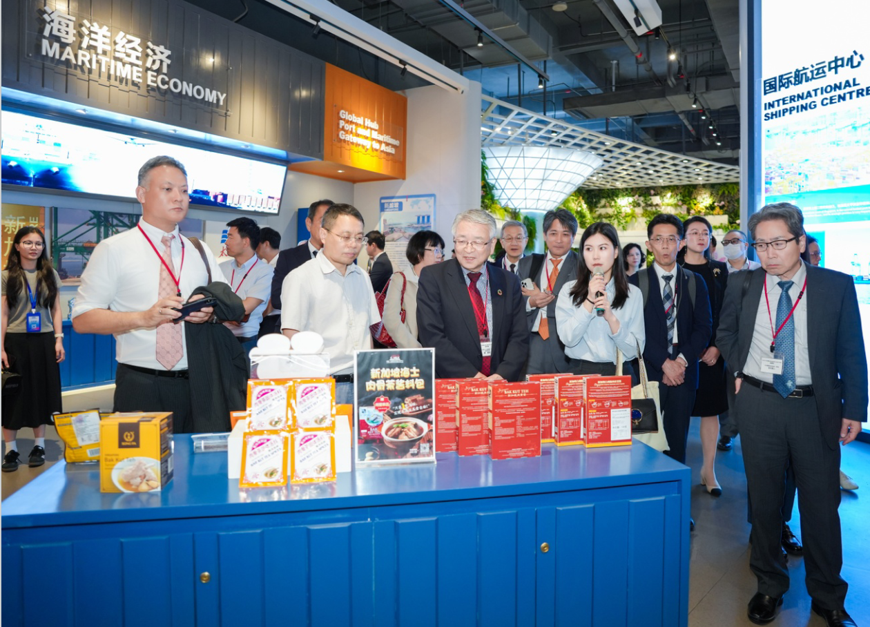 步入?yún)R聚中心,在講解員的詳細(xì)介紹下,代表團(tuán)初步了解該項(xiàng)目搭建的中國與東盟、RCEP其他區(qū)域國家乃至“一帶一路”沿線重要國家經(jīng)貿(mào)往來線上線下一站式首選平臺(tái)。在參觀主題館的過程中,館內(nèi)琳瑯滿目的商品、精美巧妙的設(shè)計(jì),讓代表團(tuán)在沉浸式的商貿(mào)體驗(yàn)中切身感受了匯聚中心的創(chuàng)新模式。