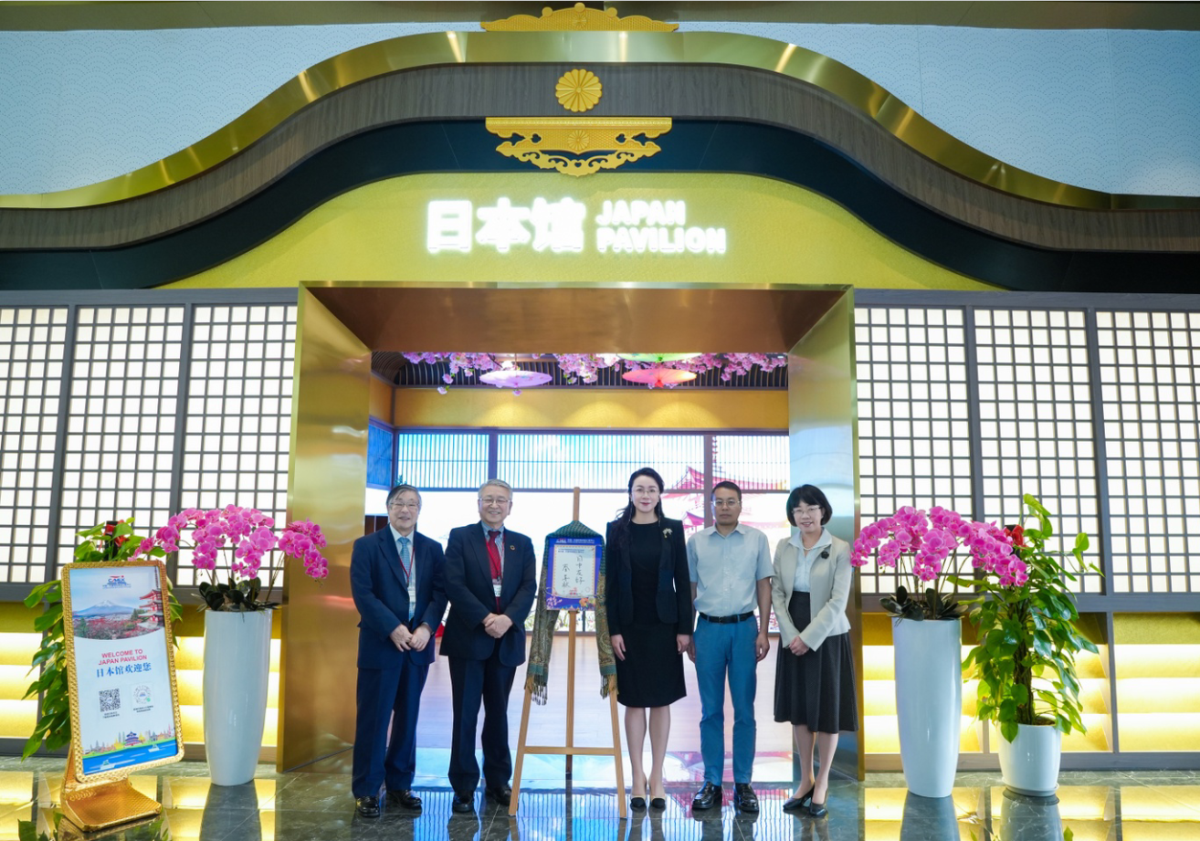 來到日本館,濃郁的日式風(fēng)情撲面而來,代表團(tuán)紛紛駐足拍照留念。作為匯聚中心獨(dú)具特色的四季主題館,日本館以“季節(jié)流轉(zhuǎn)”為設(shè)計(jì)主線,巧妙融合了日本傳統(tǒng)建筑美學(xué)與現(xiàn)代展示技術(shù),加之結(jié)合浮世繪的意境、茶道的禪意、花道的雅致,打造出移步換景的沉浸式體驗(yàn)空間,讓訪客在有限的空間內(nèi)領(lǐng)略到日本文化的精髓。
