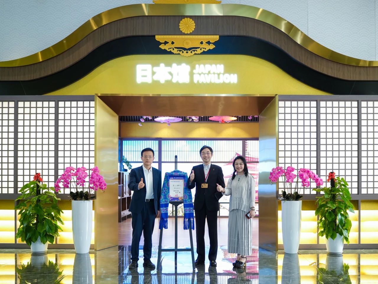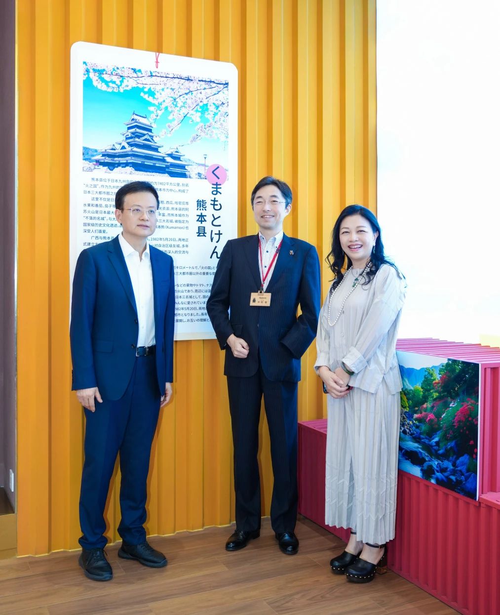 魏然主任(左)、木村敬知事(中)、趙海燕董事長(zhǎng)(右)在日本館合影