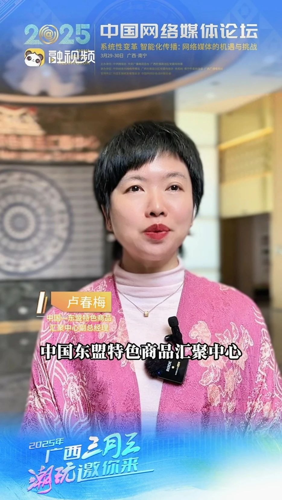 南寧市商務(wù)局副局長(zhǎng)林詩(shī)維接受媒體采訪(來(lái)源:中國(guó)臺(tái)灣網(wǎng)視頻號(hào)截圖)