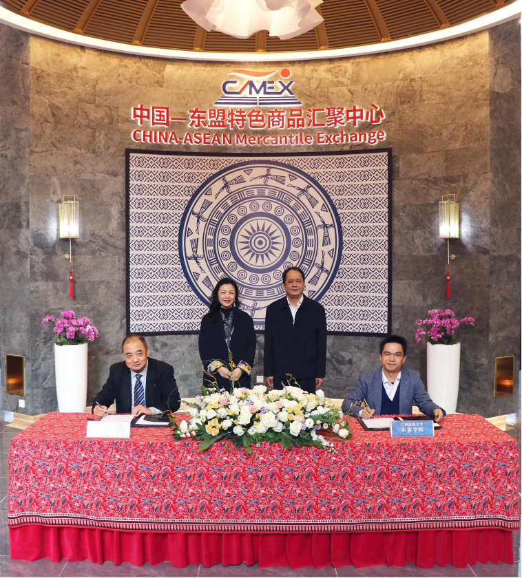 校企合作譜新篇,協(xié)同育人共發(fā)展。12月5日,中國(guó)—東盟特色商品匯聚中心(以下簡(jiǎn)稱“匯聚中心”)與廣西民族大學(xué)東盟學(xué)院舉行了戰(zhàn)略簽約儀式。廣西民族大學(xué)黨委常委、總會(huì)計(jì)師蔡高根,廣西新中產(chǎn)業(yè)投資有限公司、中國(guó)—東盟特色商品匯聚中心董事長(zhǎng)趙海燕出席儀式并見(jiàn)證簽約。