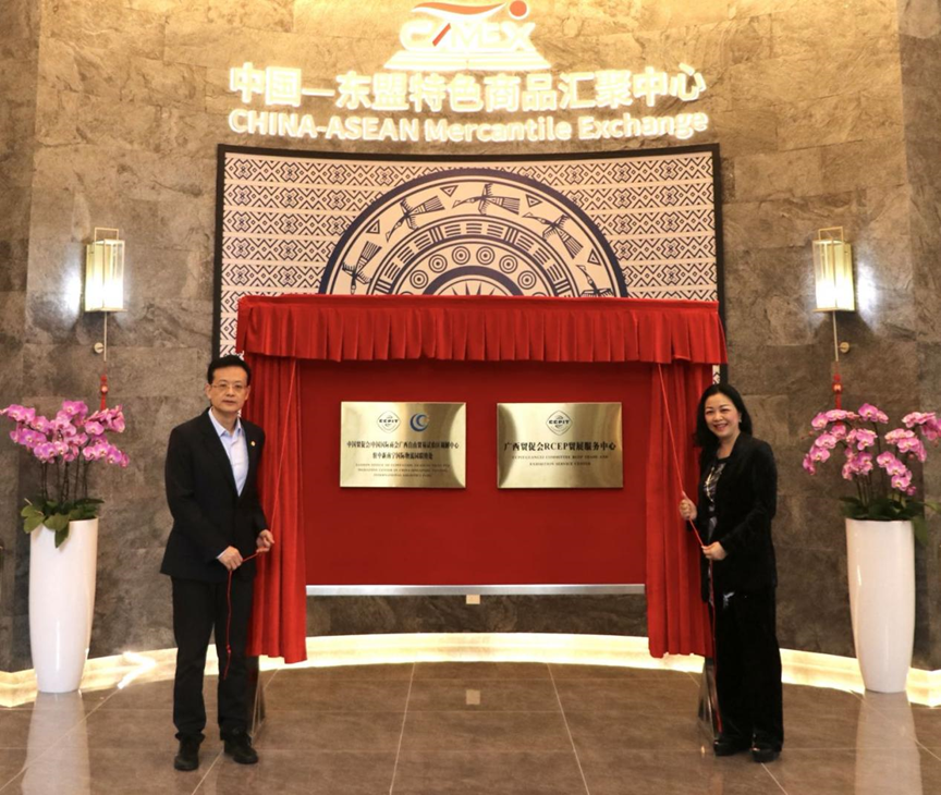 2022年11月15日,中國貿(mào)促會/中國國際商會廣西自由貿(mào)易試驗區(qū)調(diào)解中心駐中新南寧國際物流園(以下簡稱“中新物流園”)聯(lián)絡(luò)處和廣西貿(mào)促會RCEP貿(mào)展服務(wù)中心在中國—東盟特色商品匯聚中心(以下簡稱“匯聚中心”)正式揭牌。廣西貿(mào)促會黨組書記、會長魏然,廣西新中產(chǎn)業(yè)投資有限公司董事長/中國—東盟特色商品匯聚中心董事長趙海燕等相關(guān)領(lǐng)導共同見證了本次揭牌活動。