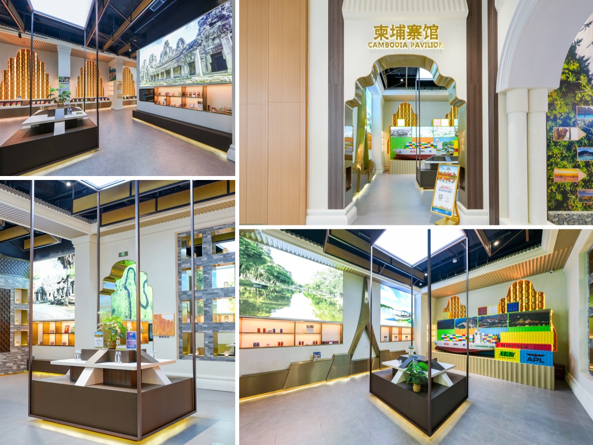 匯聚中心精心打造了18個(gè)獨(dú)具特色的主題館。其中,柬埔寨主題館整體風(fēng)格和色調(diào)均取自吳哥窟的“石”建筑元素:整體以微水泥糅合古銅色調(diào),在樸拙素雅的石色底蘊(yùn)中,復(fù)現(xiàn)吳哥窟昔日的壯麗與輝煌。