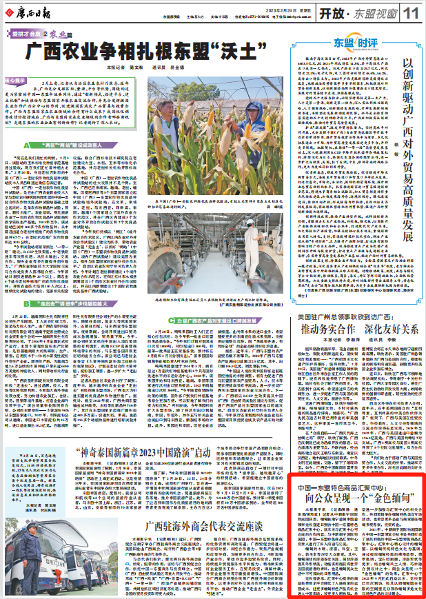 廣西日報南寧訊 (記者/黃靜 通訊員/黃巧紅)記者從中新南寧國際物流園獲悉,緬甸駐南寧總領(lǐng)事館總領(lǐng)事覺梭登近日到訪中國—東盟特色商品匯聚中心,就未來與匯聚中心可達(dá)成的合作內(nèi)容,與中新南寧國際物流園、中國—東盟特色商品匯聚中心負(fù)責(zé)人進(jìn)行了深入溝通與交流。