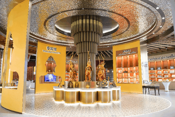 泰國館展示有多種獨具“泰味”的精美藝術品、特色食品、乳膠制品、化妝品、珠寶飾品、手工藝品等特色商品。